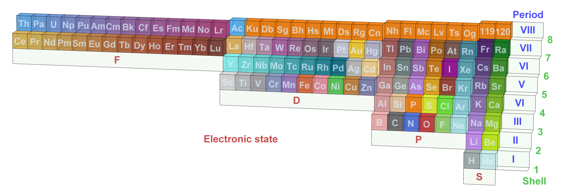 (1834 - 1907). It is one the greatest discoveries of all time, and it has fundamentally changed our understanding of Chemistry. And as it is with all great discoveries, it is based on principles that became fully clear only later, with the development of Quantum Physics. The above variant of the Periodic Table is designed by following the publication "A three-dimensional periodic table" by Y. Magarshak & J. Malinsky in Nature