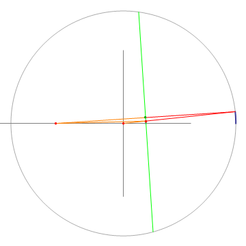 Another interesting way to construct an ellipse: Draw all points for which the ratio of the distance from a fixed point (red) to the distance from a line (green) is a constant c. If this ratio c